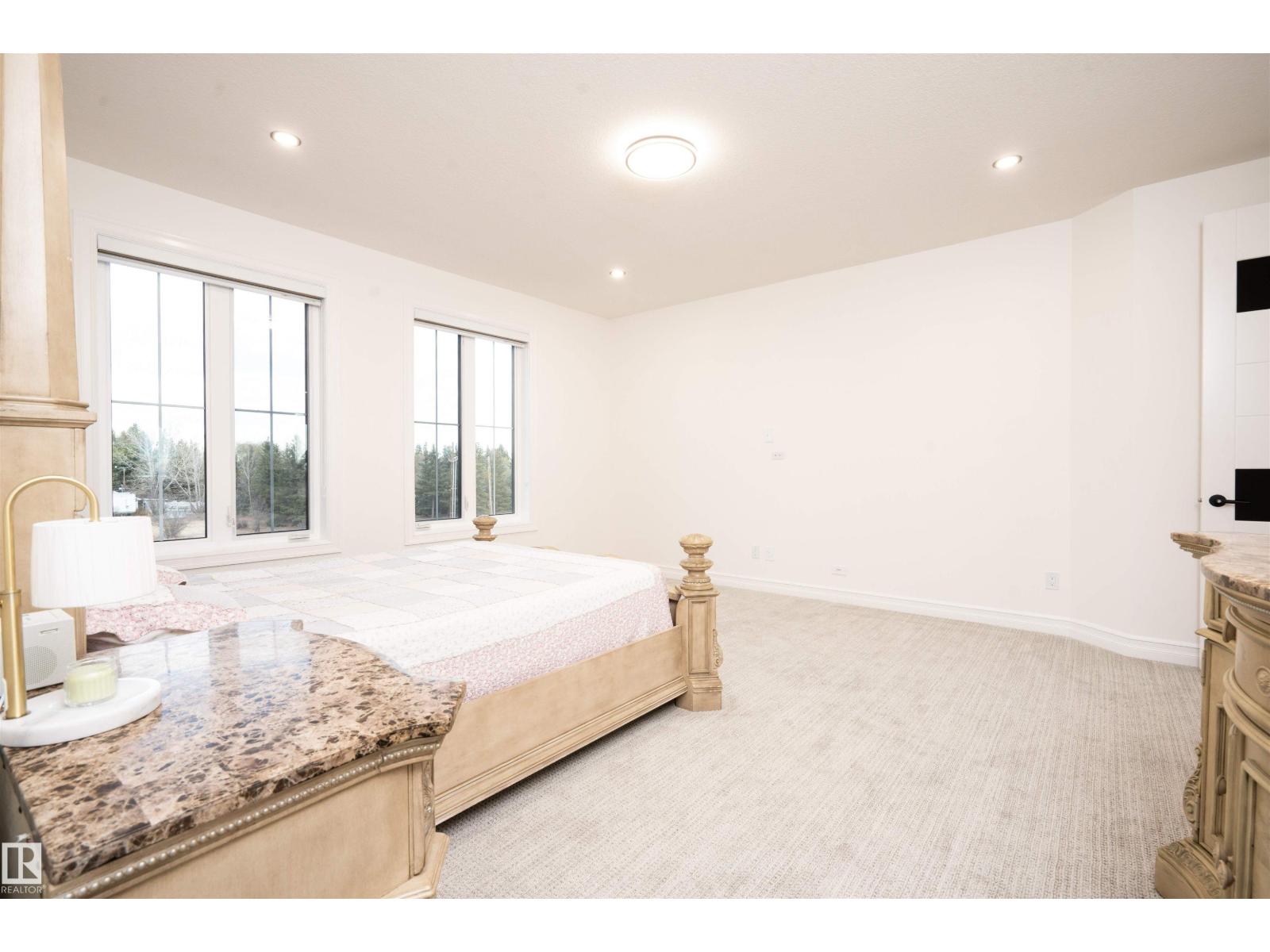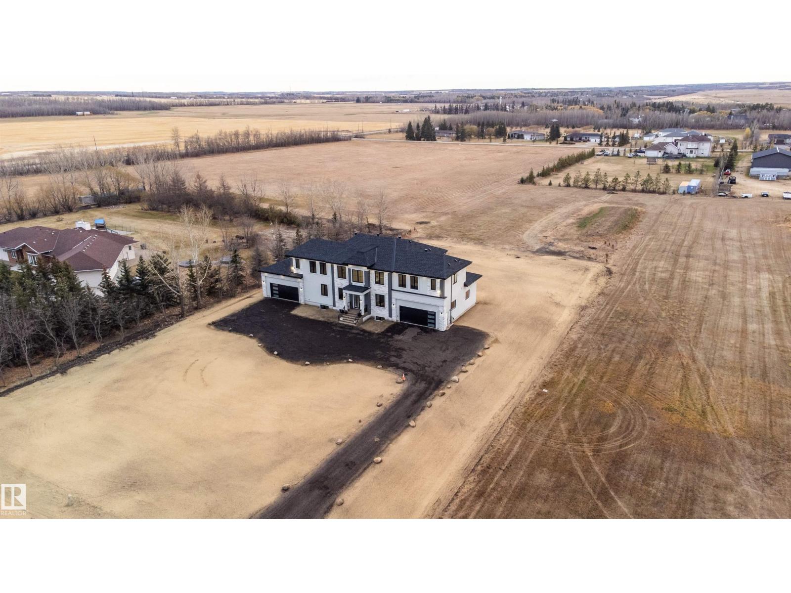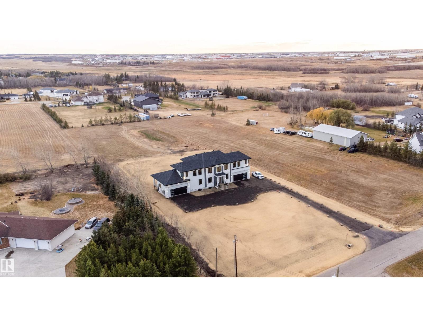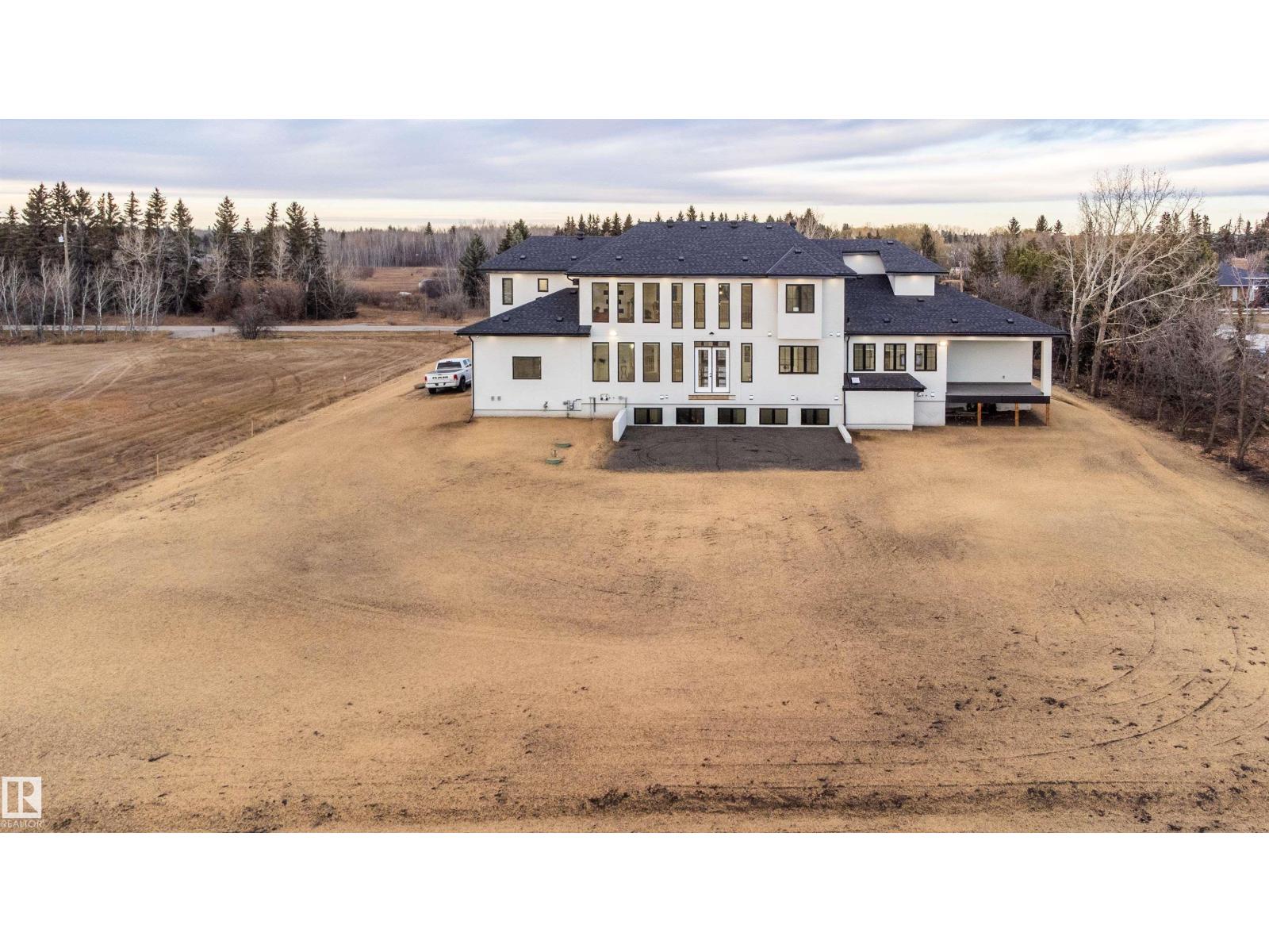 Welcome to this stunning custom estate in Beau Vista North, mins from Edmonton & Beaumont! The main foyer greets you with designer tile, warm light, and space to welcome guests. This luxury home features HYDRONIC heating in both GARAGES, Heated flr with CERAMIC TILES on main & basement, 8 beds, 5.5 baths, over 6340 sq. ft. of living space, & finished basement with 2 beds, full bath, rec room, a separate entry, kitchen/laundry rough-ins—perfect for guests. Main flr boasts grand kitchen, spice kitchen, great room, laundry, den/bdrm, & bdrm w/full bath. Upstairs: 4 big bdrms incl lavish primary, 3 baths, laundry, fam rm. Home has curved stairs, 8' doors, LED lights, speakers, security, 400 amp service for future shop/storage, 6-car garage. Designed for style, function & countryside living mins from city! 2.50 Acres land with nearly 50% recently landscaped with 500 cu yd of top soil & hydroseeding. ideal for big families or those craving luxury paired with country charm. Don’t miss this rare opportunity! (id:62055)