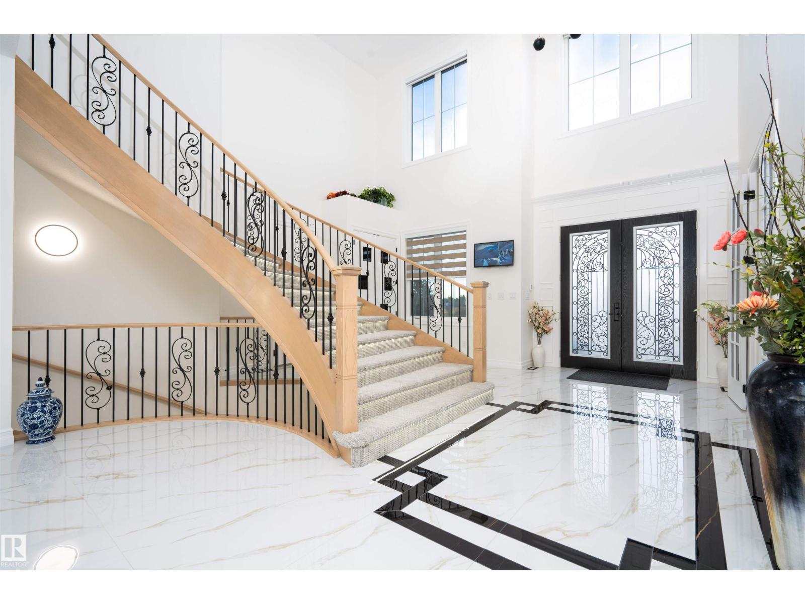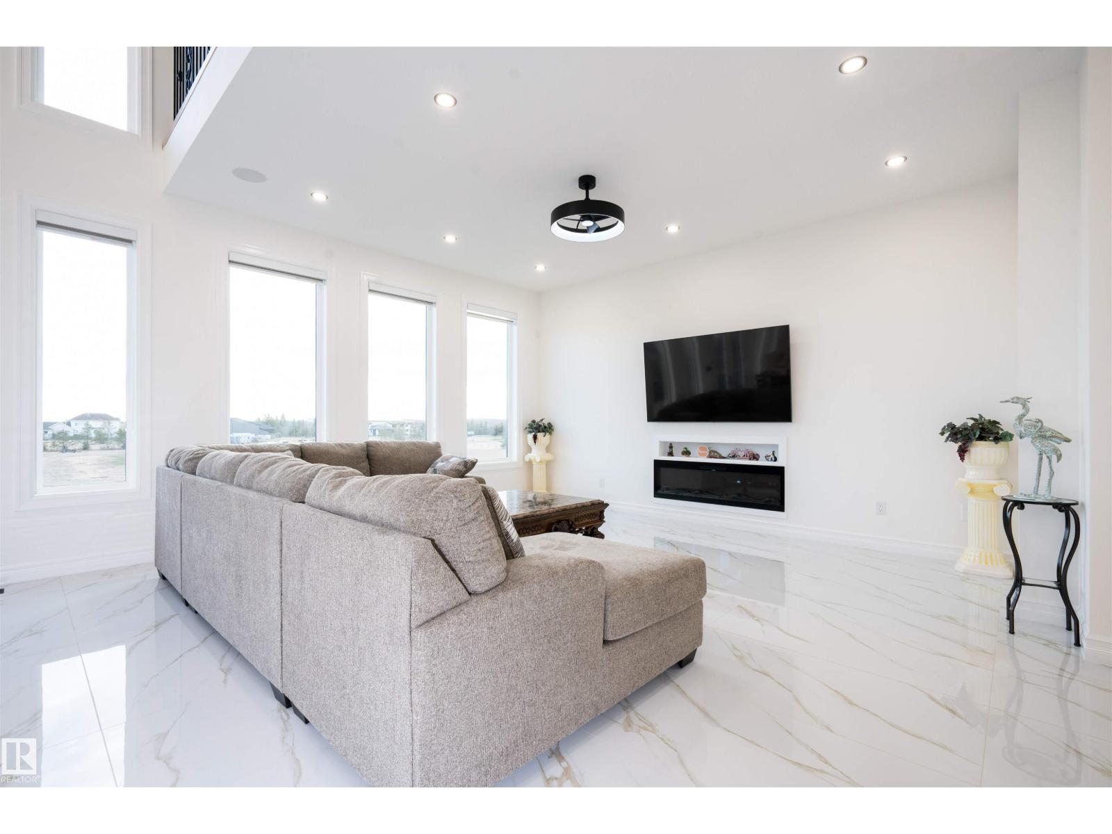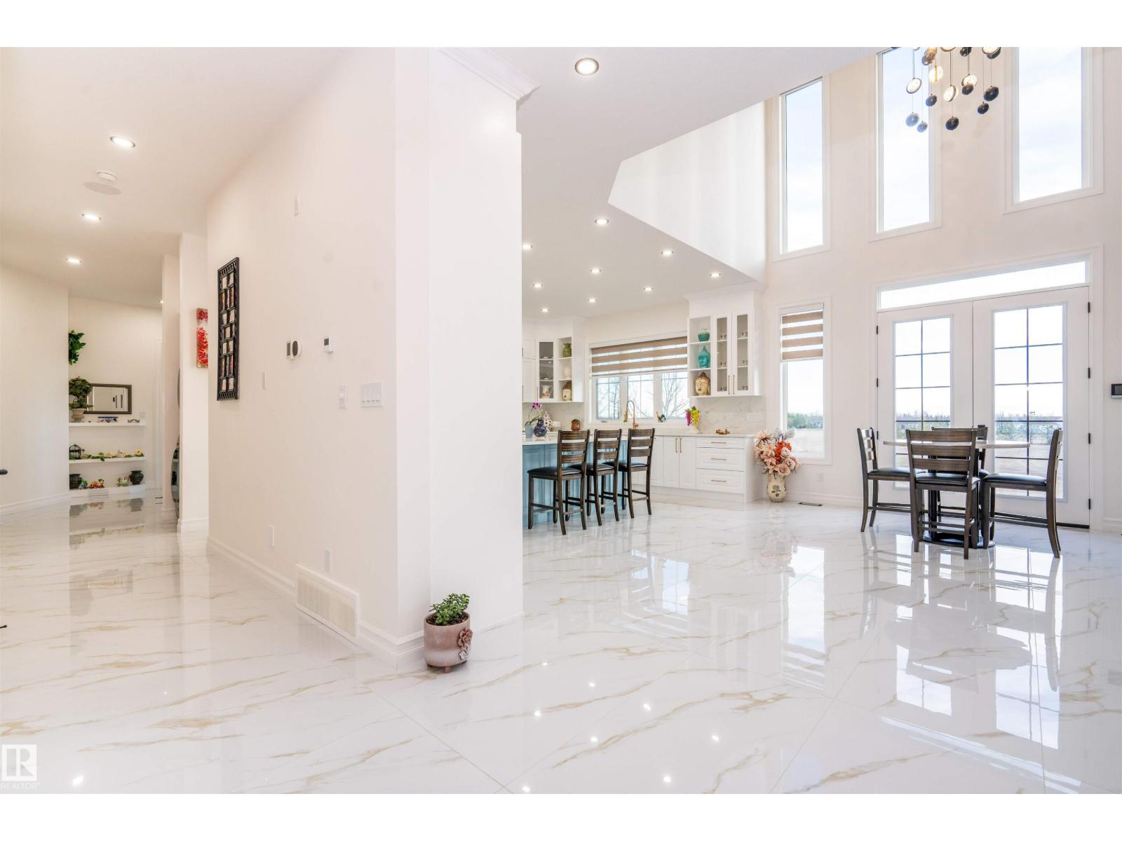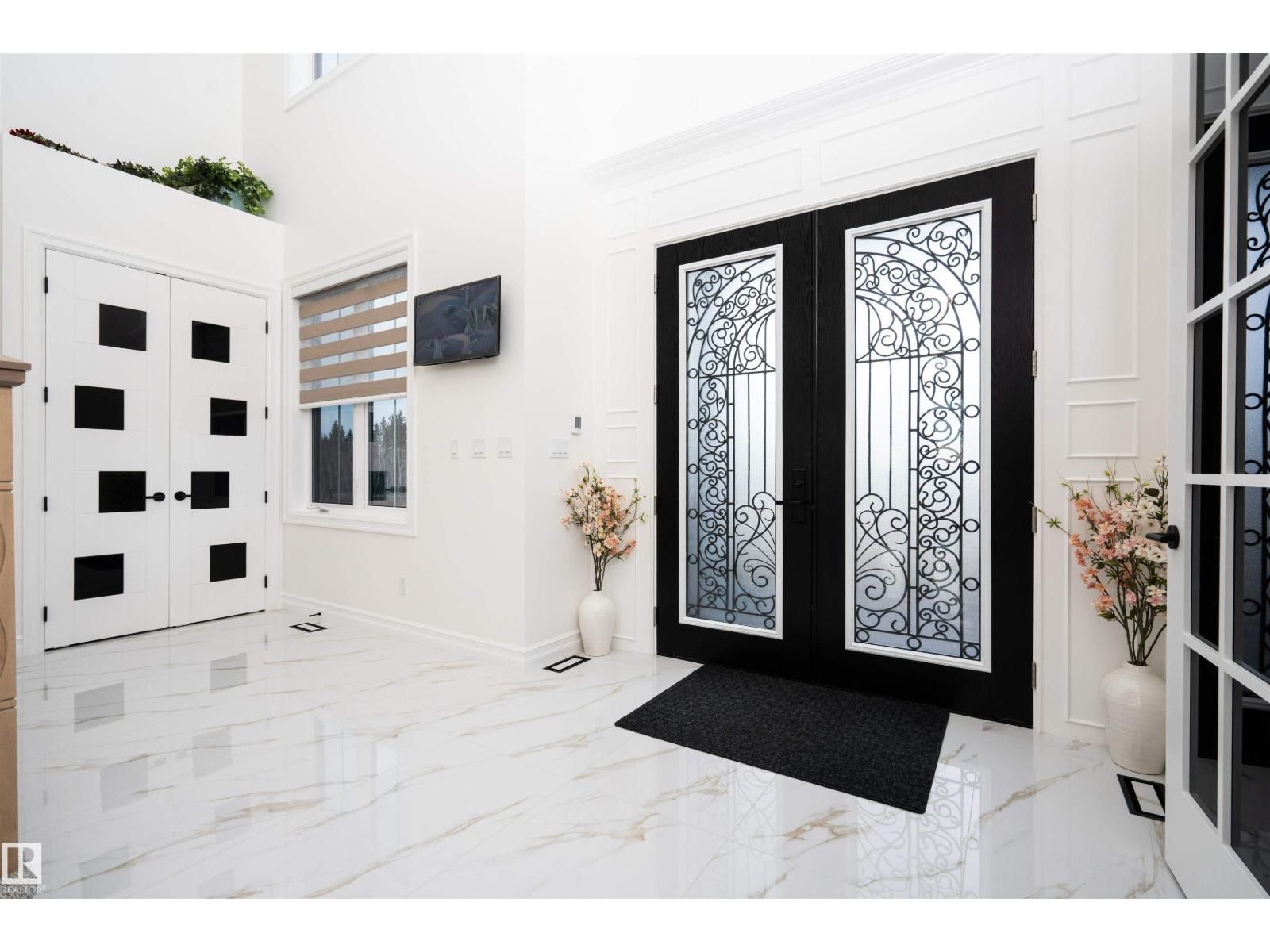 Welcome to this stunning custom estate in Beau Vista North, mins from Edmonton & Beaumont! The main foyer greets you with designer tile, warm light, and space to welcome guests. This luxury home features HYDRONIC heating in both GARAGES, Heated flr with CERAMIC TILES on main & basement, 8 beds, 5.5 baths, over 6340 sq. ft. of living space, & finished basement with 2 beds, full bath, rec room, a separate entry, kitchen/laundry rough-ins—perfect for guests. Main flr boasts grand kitchen, spice kitchen, great room, laundry, den/bdrm, & bdrm w/full bath. Upstairs: 4 big bdrms incl lavish primary, 3 baths, laundry, fam rm. Home has curved stairs, 8' doors, LED lights, speakers, security, 400 amp service for future shop/storage, 6-car garage. Designed for style, function & countryside living mins from city! 2.50 Acres land with nearly 50% recently landscaped with 500 cu yd of top soil & hydroseeding. ideal for big families or those craving luxury paired with country charm. Don’t miss this rare opportunity! (id:62055)